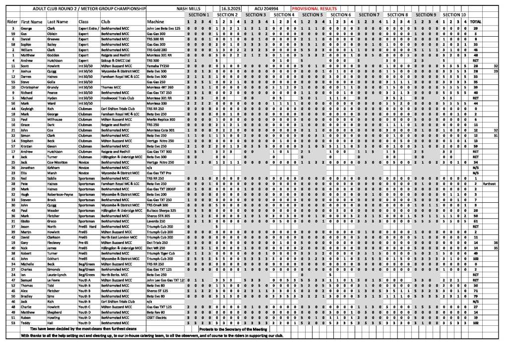 Club Championship round 2 and Meteor Group Results (provisional) 16/03/2025 Nash Mills. Posted byberkomotorcycleclub17th Mar 202517th Mar 2025Posted inUncategorized Click to access wp-1742199419814.pdf Share this: Share on X (Opens in new window) X Share on Facebook (Opens in new window) Facebook Like Loading... Related